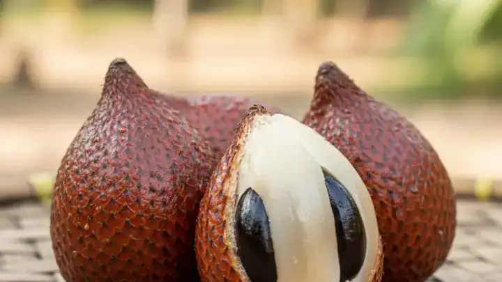 Le fruit du serpent est un fruit tropical originaire d’Indonésie, notamment de Java et Sumatra. Il doit son nom à sa peau écailleuse et brillante qui rappelle celle d’un serpent.