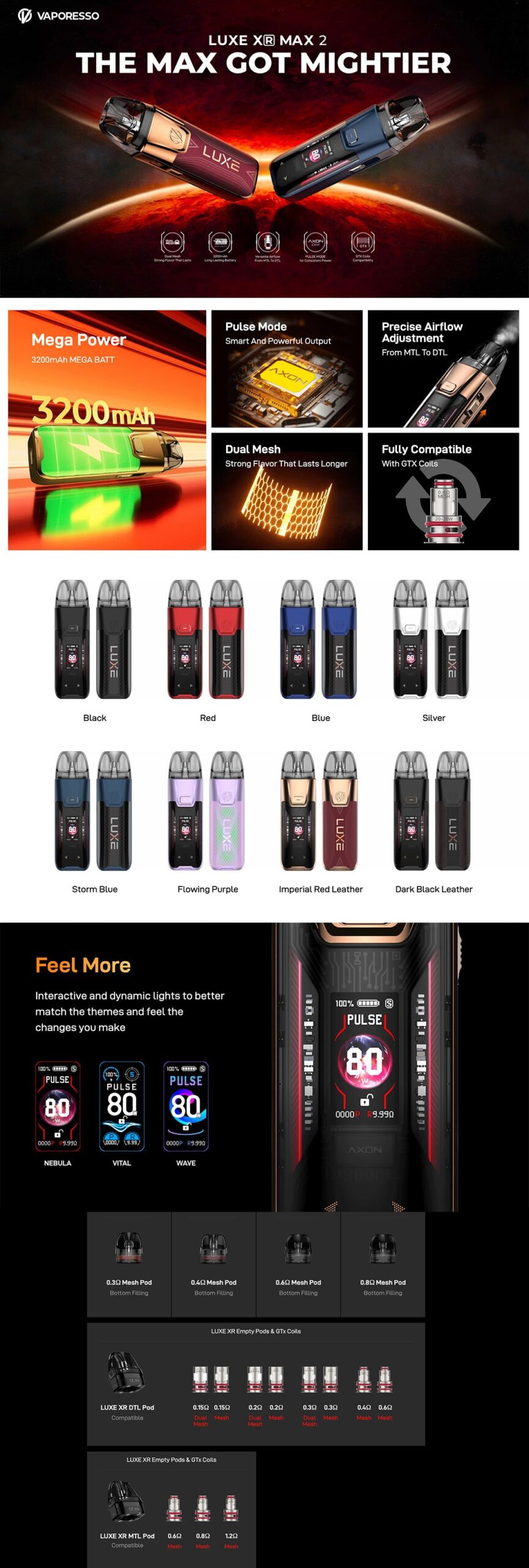 LUXE XR MAX 2 – Pod – 3200 mAh – GTX Dual Mesh – MTL/DTL – Autonomie XXL